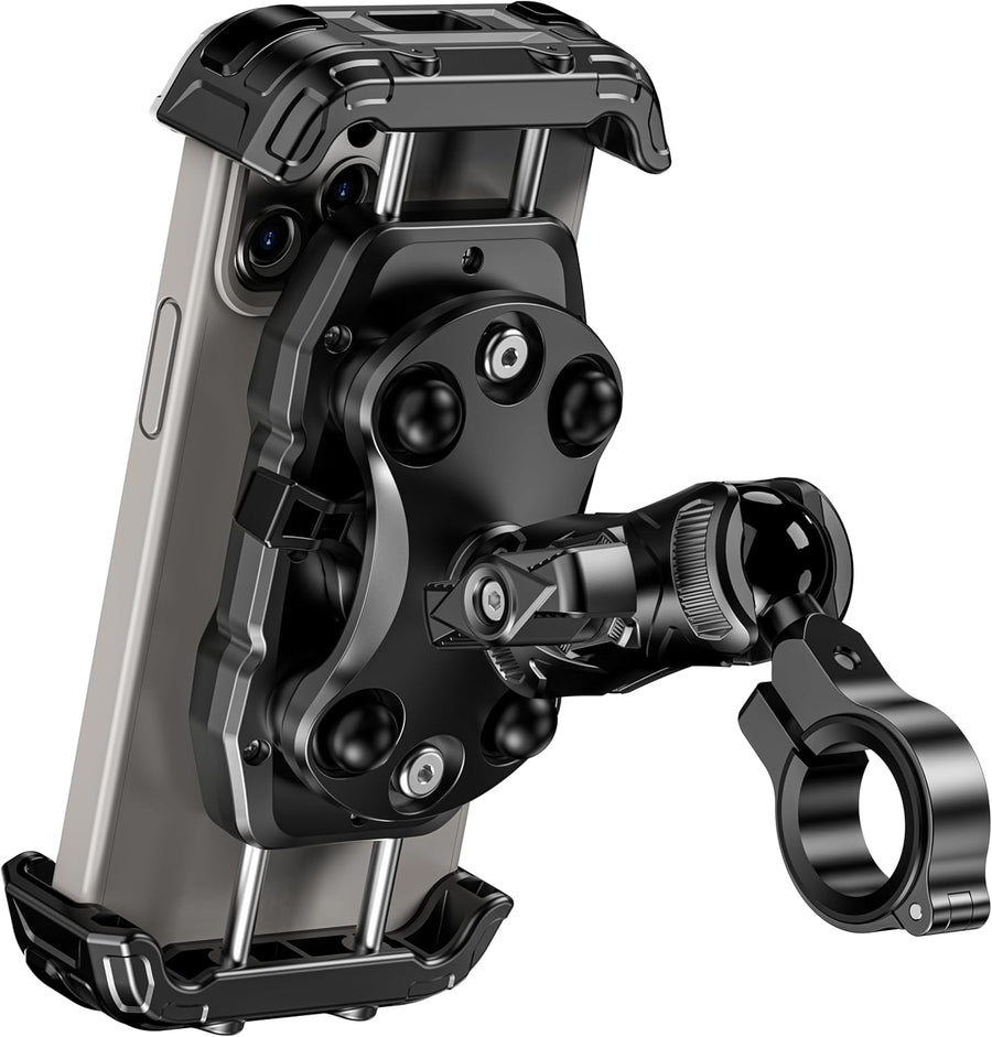 • [Robust und sicher] Der Hauptkörper der Motorrad-Telefonhalterung besteht aus PA66+GF hochfestem Material, integrierte Teleskopstangen aus 304 Edelstahl. Ausgestattet mit Vibrationsdämpfer, kann effektiv die Vibrationen durch holprige Strassen mildern.