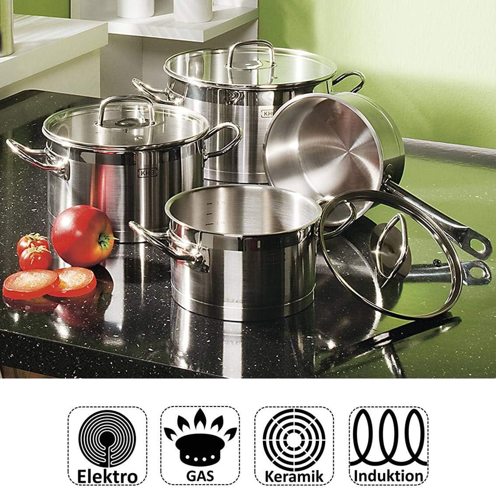 - [Leicht zu reinigen und pflegeleicht] Die glatte Edelstahloberfläche macht die Reinigung zu einem Kinderspiel. Sparen Sie Zeit in der Küche und geniessen Sie die unkomplizierte Pflege dieses Topfsets, das selbst nach zahlreichen Kochsessions seinen