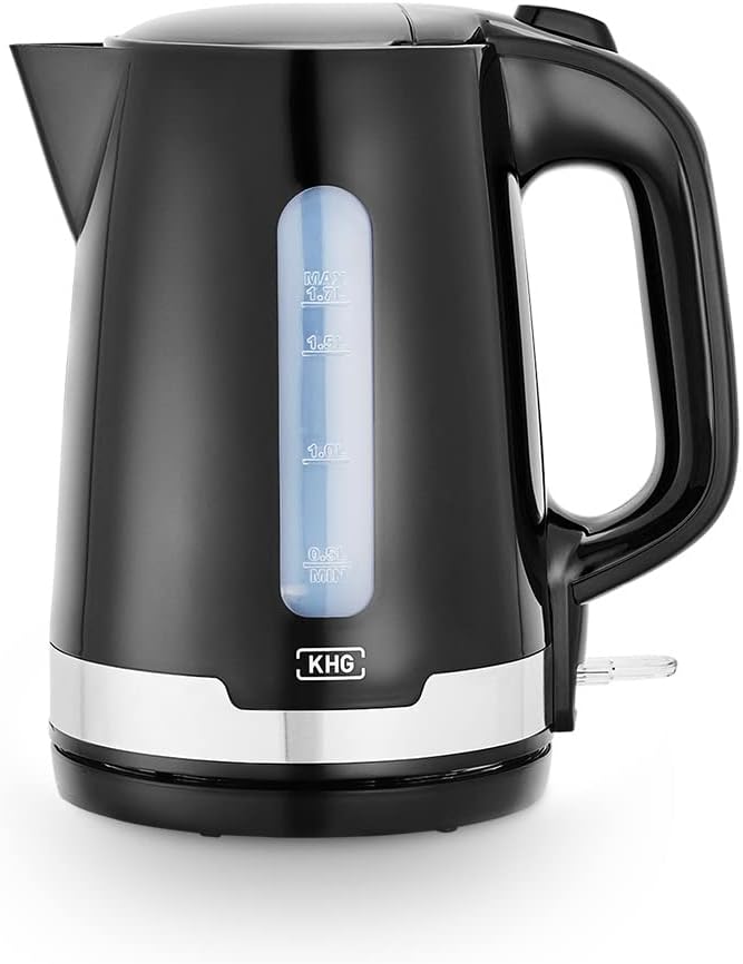- 𝗢𝗽𝘁𝗶𝗺𝗮𝗹𝗲 𝗞𝗮𝗽𝗮𝘇𝗶𝘁ä𝘁 ✅ Der KHG Wasserkocher ermöglicht ein Fassungsvermögen von 1,7 Liter Wasser. Der Wasserstand kann über die Wasserstandsanzeige auf der Kannenseite mitverfolgt werden.