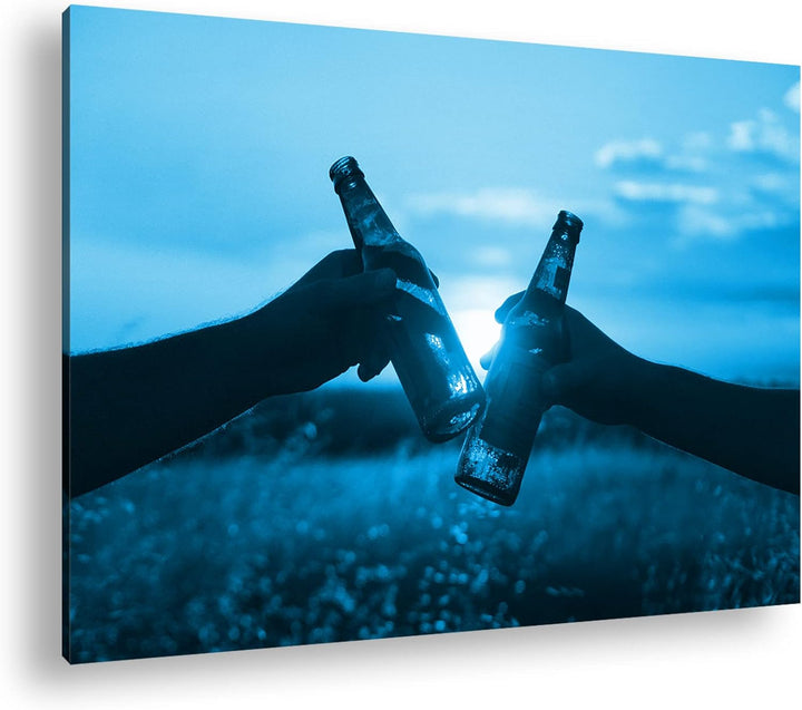 deyoli kühles Bier zum Abend Format: 80x60 Effekt: Monocrome Blau als Leinwand, Motiv fertig gerahmt
