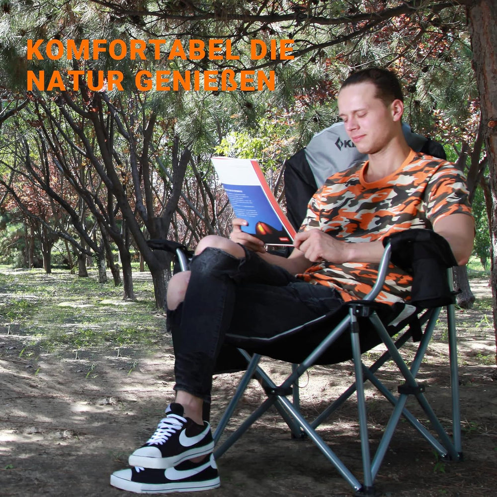 - 【KÜHLERBEUTEL UND ARMSTÜTZE】 Mit dem Kühlbeutel können Sie einen Heisswasserbeutel, Lebensmittel oder ein kaltes Getränk (3 Dosen) verstauen. Die Verpackung auf der rechten Seite wird für Bücher, Magazine und andere kleine Gegenstände verwendet. Die zarte und weiche Armlehne ist praktisch, damit Sie sich ausruhen können. Unser Mehrzweckstuhl eignet sich perfekt für den Innenbereich. Sie können ihn auch für Aktivitäten im Freien wie Picknick, Camping, Strand, Terrassenpartys und Angeln nutzen.