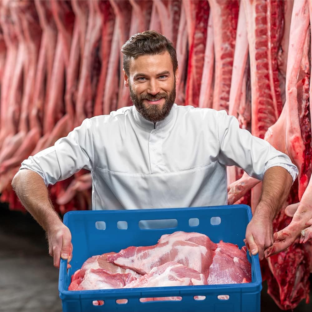 - FUNKTION: Fleischkisten aus Kunststoff sind bestens geeignet, um Lebensmittel zu verstauen oder zu transportieren. Diese Kisten sind robust, stabil, stapelbar und extrem vielseitig einsetzbar. Ein Regal mit diesen gestapelten Eurokisten ist platzsparend