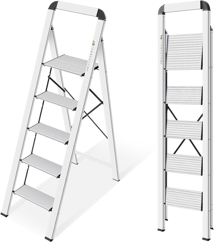 - 【4,6 cm nach dem Zusammenfalten】: Die Grösse dieser Leiter erfüllt die Nutzungsanforderungen der meisten Familien, die Leiter ist nur 4,6 cm breit nach dem Falten, so dass es ideal für die Lagerung in der Ecke oder unter dem Sofa, usw., einfach zu