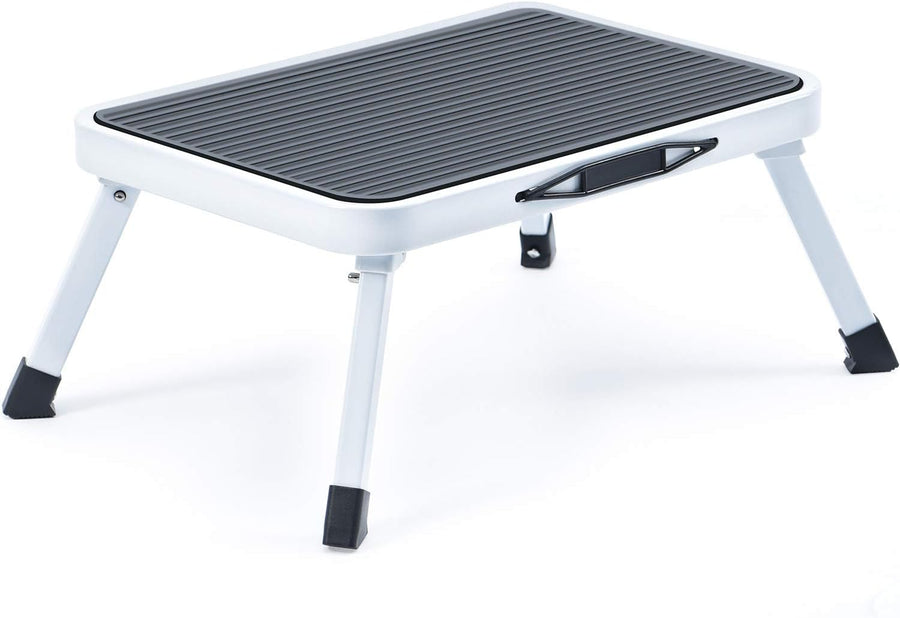 - 【STURMBAR UND SICHER】 Der Tritthocker ist aus robustem Stahl gefertigt. 4 Beine stützen die Leiter stabil und 4 rutschfeste Füsse verhindern, dass der Benutzer ausrutscht, wenn er auf ihr steht. Breite Sprossen mit Rillen können Stürze
