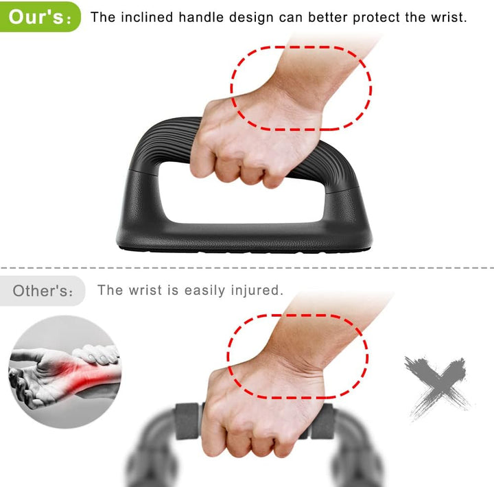 • 【Non-Slip Rubber Pad】Es gibt ein 5 1/2 * 7 9/10 Zoll grossflächiges Gummipad an der Unterseite, das super rutschfest ist. Stellen Sie sicher, dass der Push up Griffe auf verschiedenen Bodenarten stabil bleibt, ohne zu rutschen, und höhere Sicherheit schützt Sie vor Verletzungen während des Trainings.