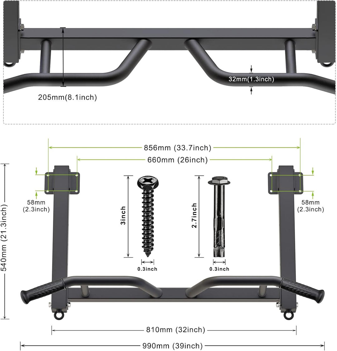 - 💯【Easy To Install And Use】Diese Klimmzugstange ist so konzipiert, dass sie mit Schrauben und Unterlegscheiben (im Lieferumfang enthalten) an Balken oder Trägern montiert werden kann. Es dauert nur ein paar Minuten zu installieren und es ist