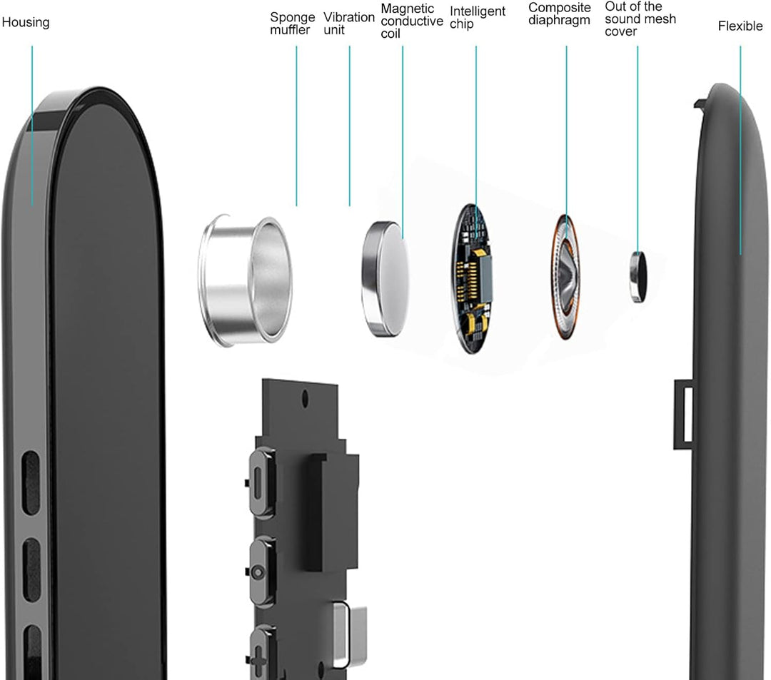- KNOCHENLEITUNGSTECHNOLOGIE: Der -Knochenleitungskissenlautsprecher verwendet die neueste Knochenleitungstechnologie, um den Klang auf vibrierende, kompakte und tragbare Weise durch Ihr Kissen an Ihre Ohren zu übertragen.