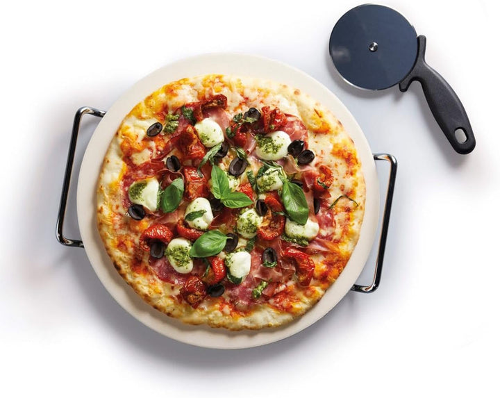 - Pizzarad inklusive: der Stein kommt mit einem Schneiderad aus Edelstahl mit Kunststoffgriff, einfach zu reinigen und ideal für Pizzaabende mit Freunden und Familie