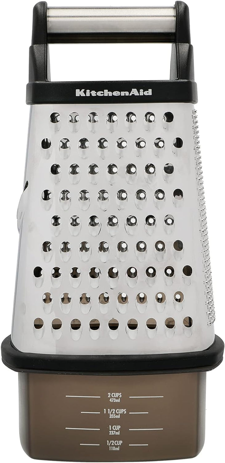 - Produkt 1: Auffangbehälter: der Behälter passt in die Vierkantreibe und fängt die geriebenen Zutaten auf, der Container hat eine Kapazität bis zu 473 ml