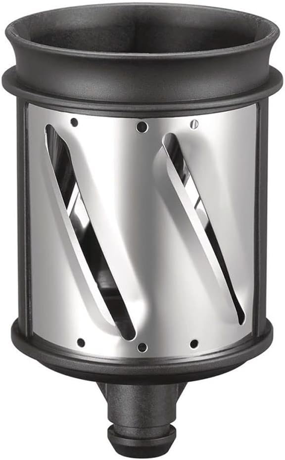 - Im Paket enthalten: Schneidkörper, 2-in-1 Stopfer, Schneidtrommel (3 mm), mittlere Raspeltrommel (4 mm), grobe Raspeltrommel (6 mm) und Aufbewahrungsbox.