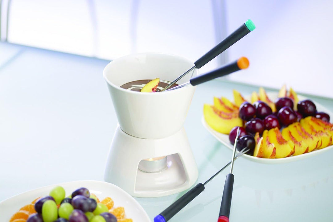 - FARBLCH MARKIERTE FONDUEGABELN: Die Gäste können die Gabeln in die üppige Schokolade eintauchen, ohne sich Sorgen über Verwechslungen machen zu müssen