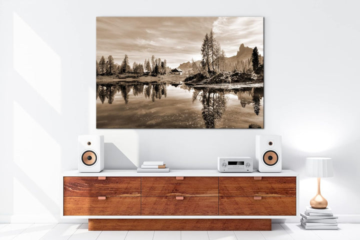 deyoli Kleiner See am Fusse des Dolomiten-Gebirges Format: 80x60 als Leinwand, Effekt: Sepia, Motiv