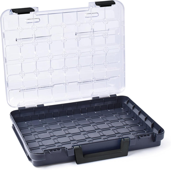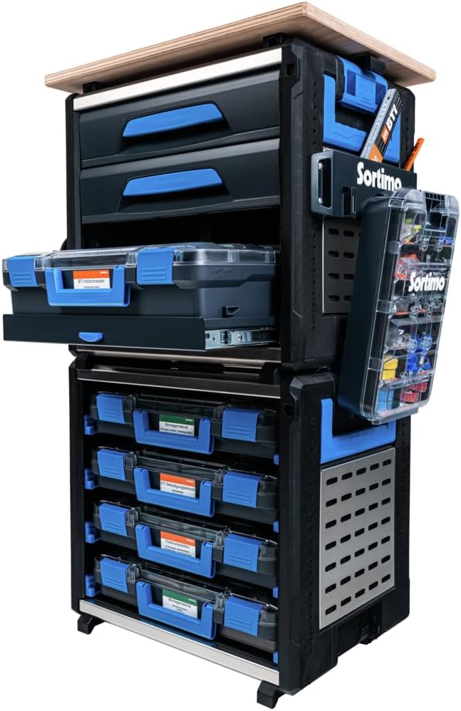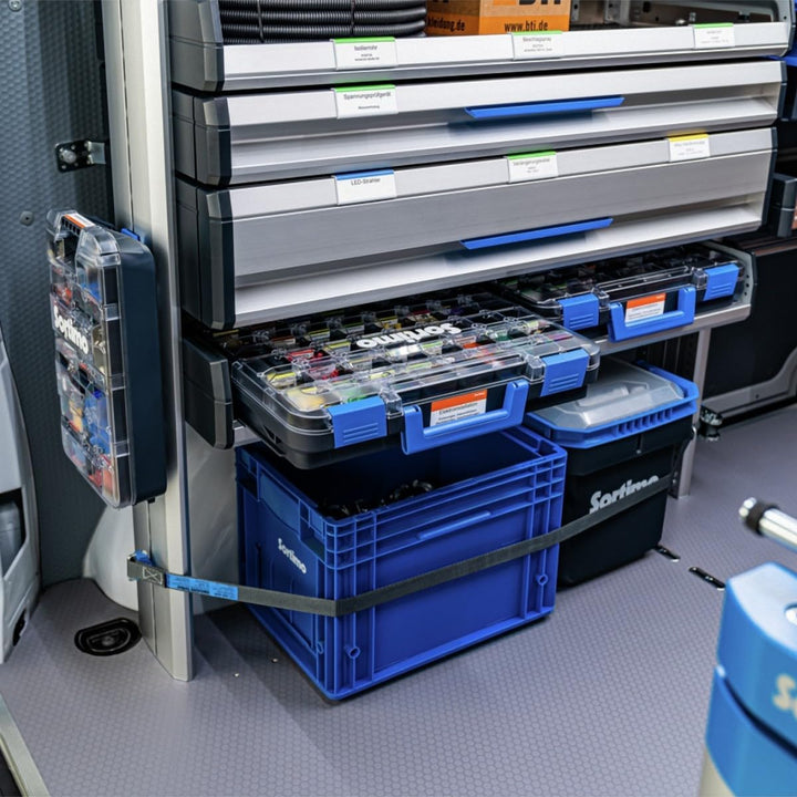 - ÜBERSICHTLICH – Die Sortimo T-BOXX verfügt über einen transparenten Deckel, der für freie Sicht in sorgt. Übersicht & Ordnung sind durch die am Boden & Deckel einrastenden Insetboxen gegeben