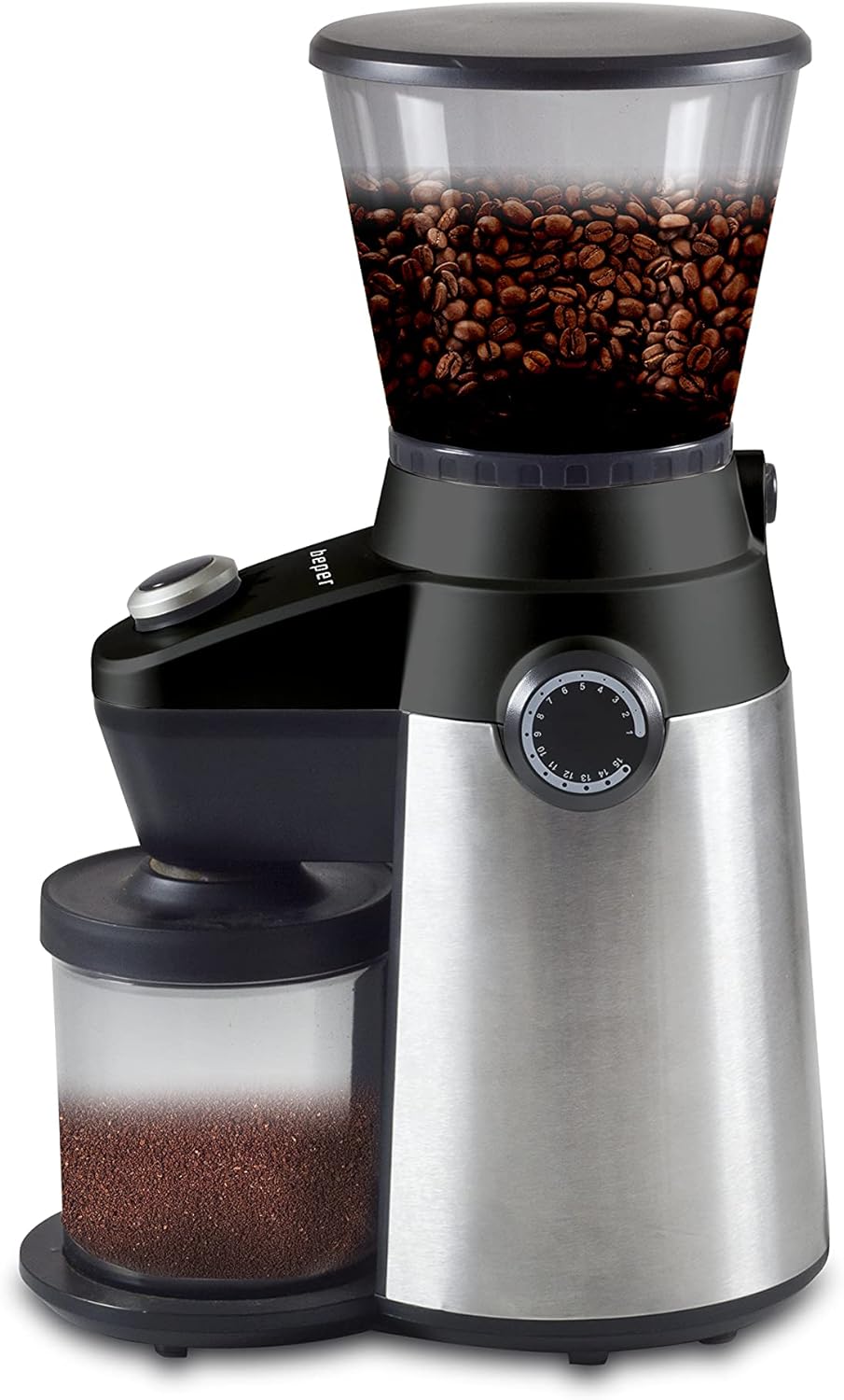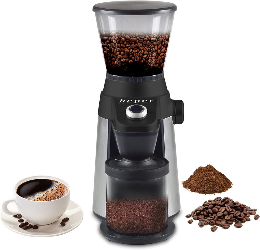 - GROSSE KAPAZITÄT UND PROFESSIONELL: Die Beper Professional Pressure Coffee Grinder ist mit einem 800 ml Behälter für Kaffeebohnen und einem 600 ml Behälter für gemahlenen Kaffee ausgestattet
