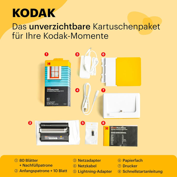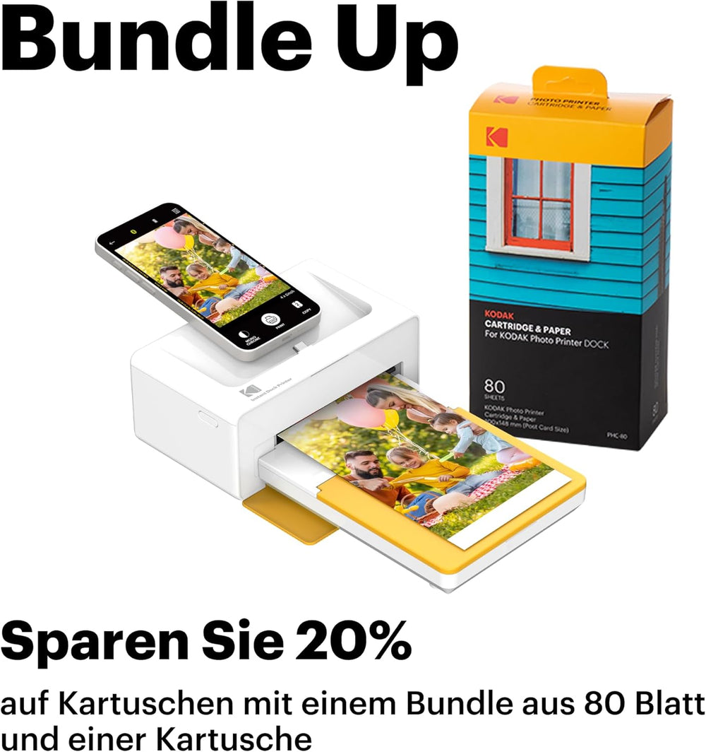 • Drucken und anschliessen: Mit dem KODAK Dock Plus Fotodrucker kannst du dein Telefon anschliessen und aufladen und sofort deine Lieblingsfotos drucken. Kodak Dock Plus ist mit Apple- und Android-Geräten kompatibel und unterstützt auch drahtlose