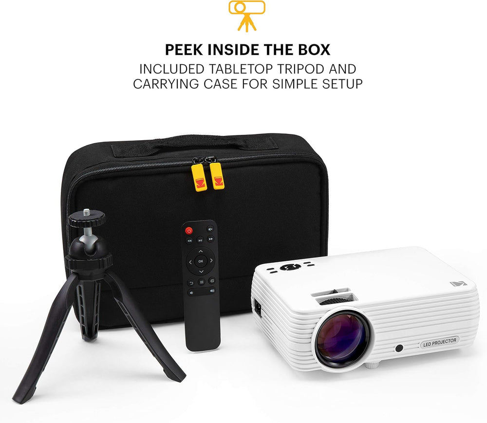- Klingeln Sie den großen Bildschirm zum Mitnehmen; reisefreundliches Design für ein ganzes Heimkino-System in einem praktischen Gerät. | Set enthält Netzkabel, AV-Kabel, Stativ, Hülle und Bonus kabellose Fernbedienung | perfekt für