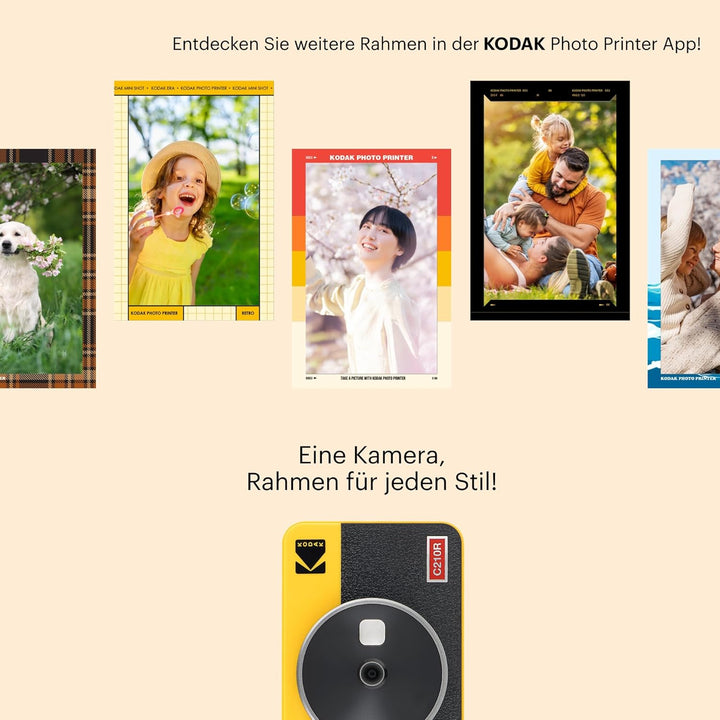 - ZWEI ARTEN VON FOTOS - Der KODAK Mini 2 Retro Fotodrucker unterstützt sowohl Fotos mit Rand als auch randlose Fotos. Schreiben Sie Ihre Erinnerungen in Fotos mit Rand, damit sie auf ewig erhalten bleiben. Drucken Sie Fotos randlos, um grössere Bilder