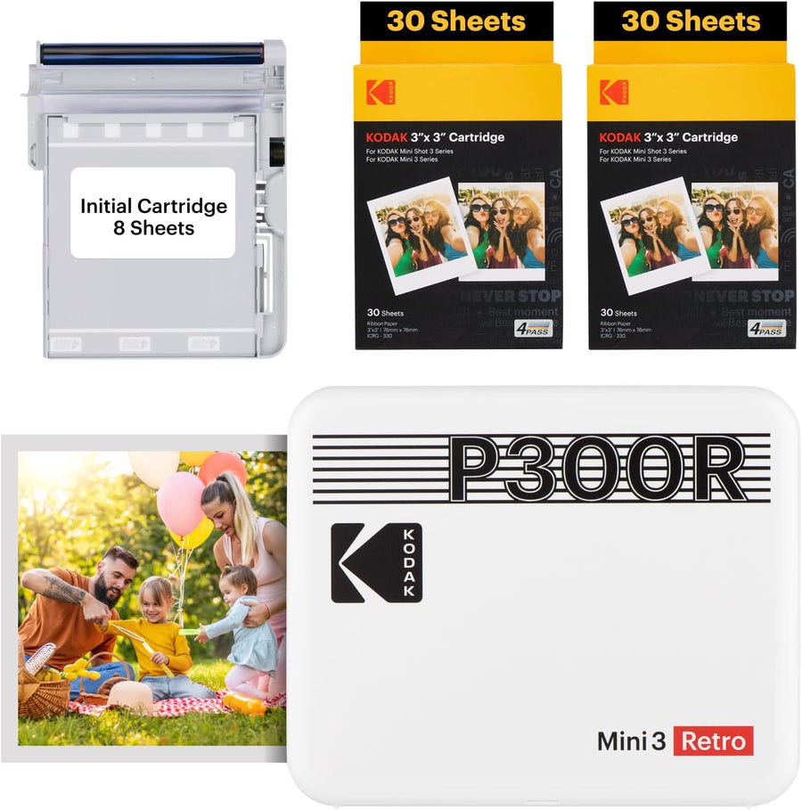 KODAK Mini 3 Retro 4PASS Fotodrucker, tragbar (7,6 x 7,6 cm) – Paket mit 68 Blättern, Weiss Impriman