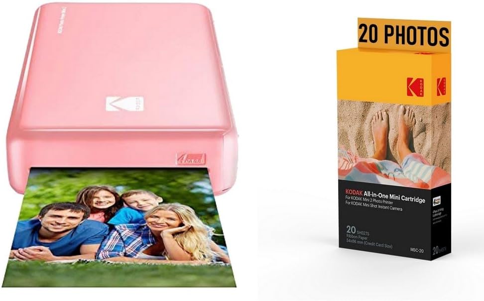 KODAK Pack Fotodrucker PM220 und Kartusche MSC20 – Fotos 5,4 x 8,6 cm, WiFi, kompatibel mit iOS und