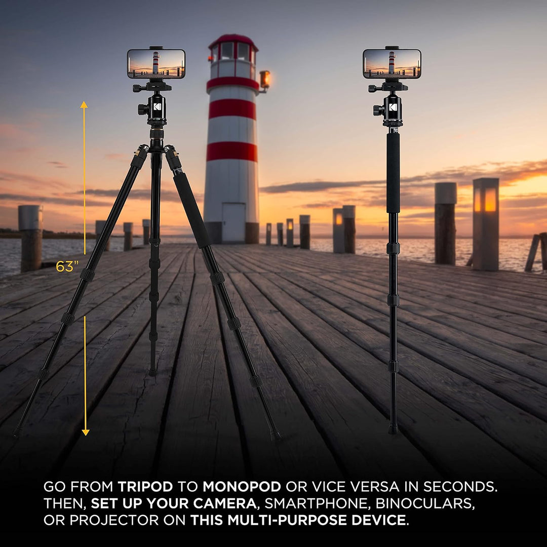 - IM BLICK VOM STATIV ZUM EINBEINSTATIV | Das kompakte umwandelbare 2-in-1-Fotoausrüstungssystem kann als herkömmliches Kamerastativ bis zu 63 Zoll oder als einbeiniges Einbeinstativ für eine Vielzahl von professionellen und Amateur-Fotografie- und