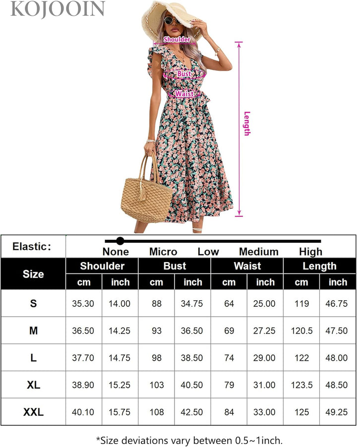 KOJOOIN Damen Sommerkleid Kurzarm Maxikleid Lange Wickelkleid Volant Kleid Rüschen Strandkleid V-Aus