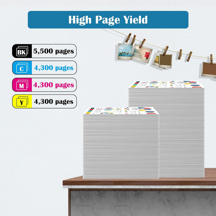 - Hohe Druckausbeute: 5.500 Seiten für Schwarzer, 4.300 Seiten für C/M/Y mit 5% A4-Deckung, basierend auf ISO / IEC 19752.