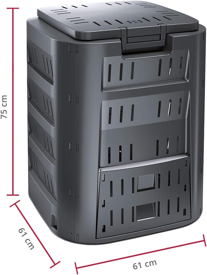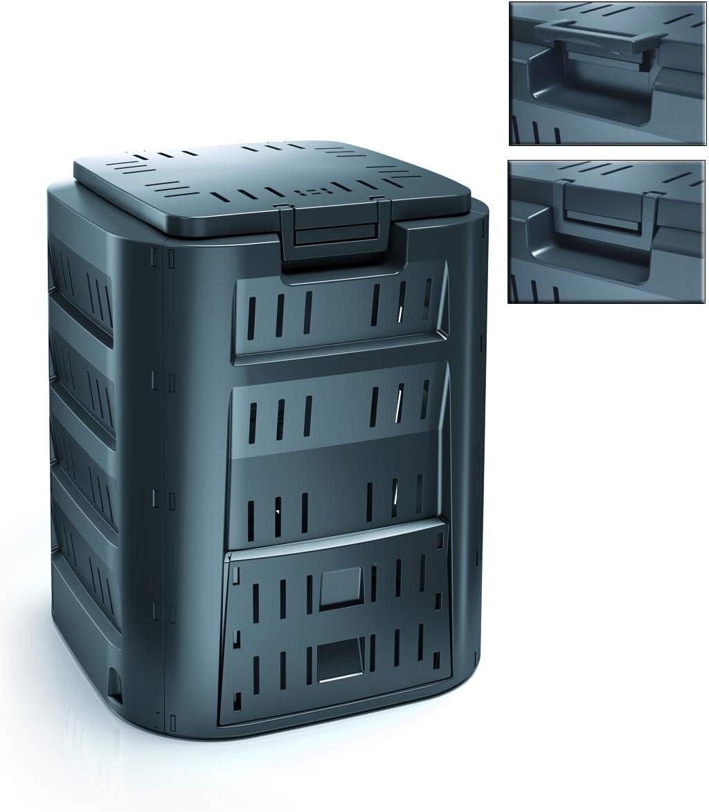 - mit robusten Kunststoff-Klippverschluss ausstattet und halten den Deckel sehr gut am Korpus des Komposters | Die Bodenplatte ist nicht im Lieferumfang inbegriffen, somit kann der Komposter individuell platziert werden