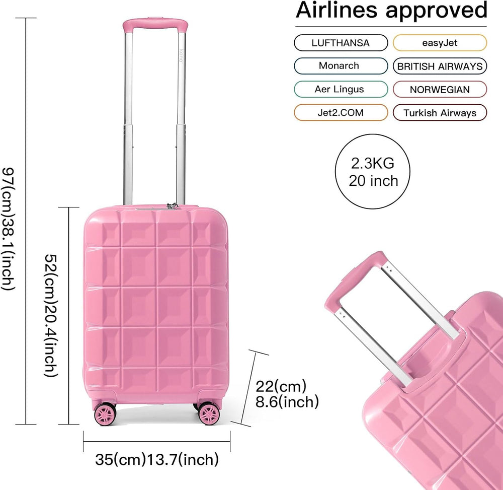 - Masse: 54 cm Koffer Handgepäck 54 x 34 x 22 cm (alle Teile), 46 x 33 x 22 cm (Körper). Fassungsvermögen: 34 liter. Gewicht: 2,4 kg. Dieses Kono 54 cm grosse handgepäck trolley erfüllt handgepäck Kabinengepäck der meisten Fluggesellschaften wie