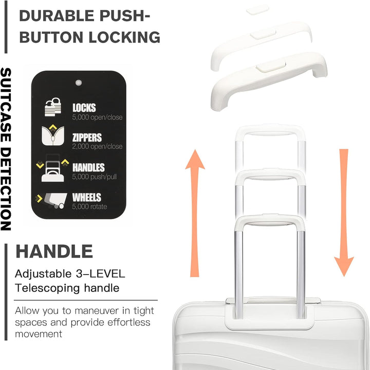 - Leise Spinner-Räder + Aluminium-Teleskopgriff + kurzer Griff: Profitieren Sie von neuen weichen TPE und Schmierkugeln in den Rädern, der Reisekoffer bewegt sich sehr leise und reibungslos mit 360° drehbaren Doppelrollen. Der Aluminium-Teleskopgriff