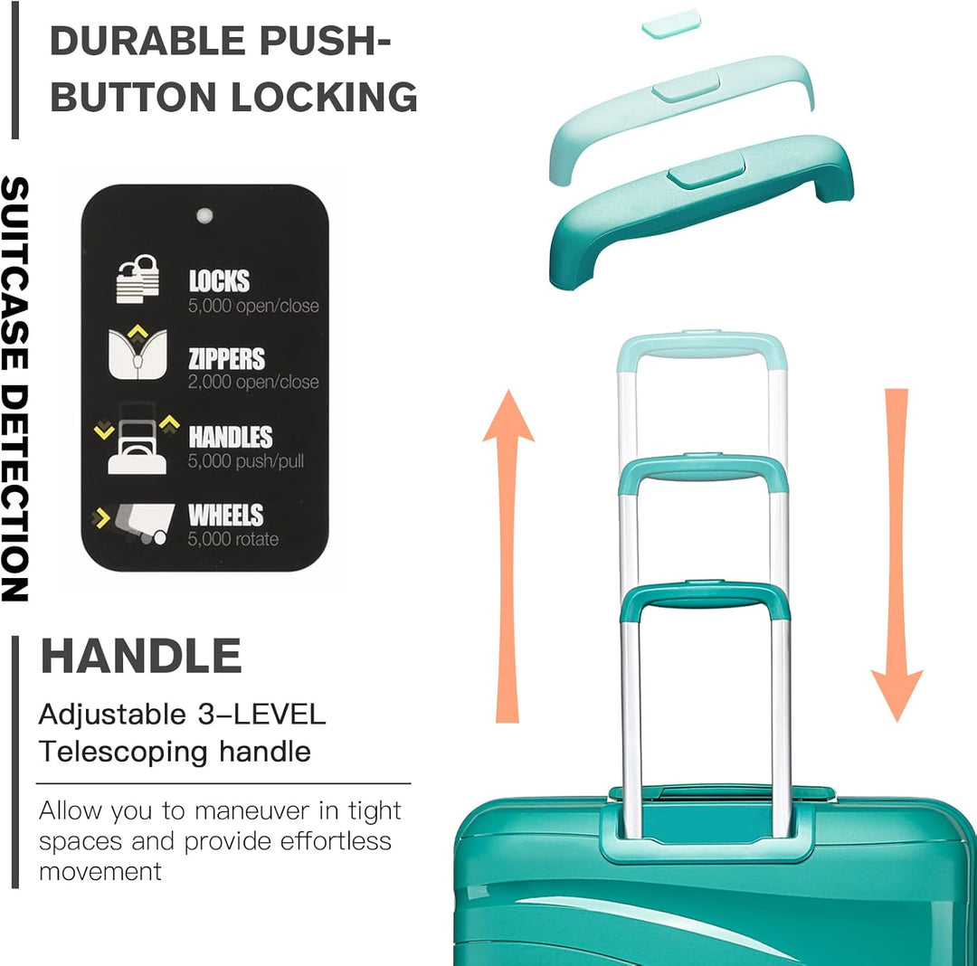 - Leise Spinner-Räder + Aluminium-Teleskopgriff + kurzer Griff: Profitieren Sie von neuen weichen TPE und Schmierkugeln in den Rädern, der Reisekoffer bewegt sich sehr leise und reibungslos mit 360° drehbaren Doppelrollen. Der Aluminium-Teleskopgriff