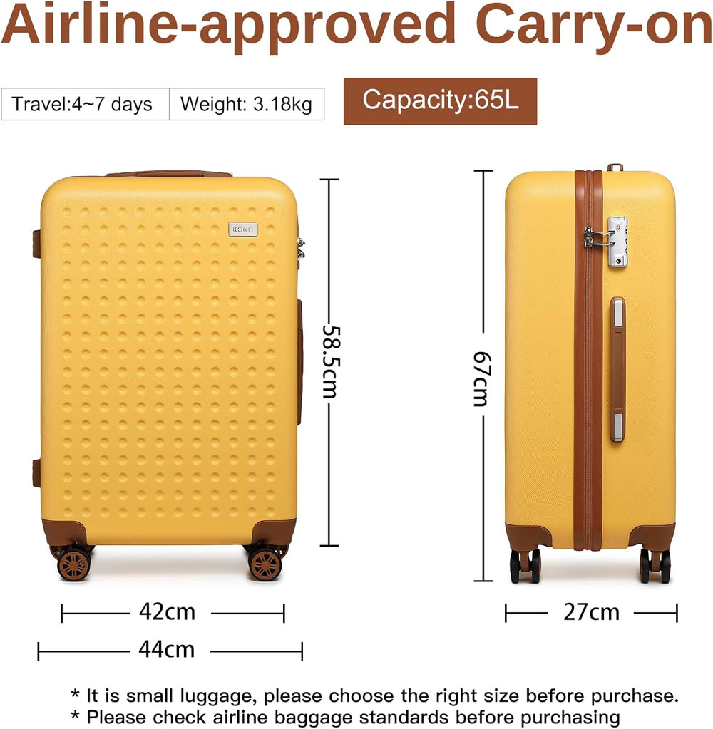 - Für Meisten Fluggesellschaft Geeignet - Der Handgepäck Koffer mit Rollen ist 67*44*27cm Grösse, 3,18kg Gewicht. Der Rollkoffer perfekt für 1-2 Wochen Urlaub. (ACHTUNG: Wir empfehlen Ihnen die Koffer-Grösse der Fluggesellschaften vor dem Flug nochmal