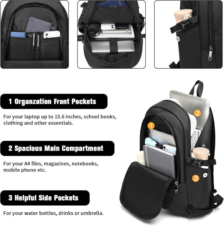 - Grosser geräumiger Rucksack: Unsere Laptoptasche kann einen Laptop von 15,6 Zoll halten, 1 Haupt-Reissverschlusstasche für Ihren Laptop, Kamera, Regenschirm, Kleidung, 1 Vordertasche mit Reissverschluss für Ihr Handy, 1 Vordertasche mit