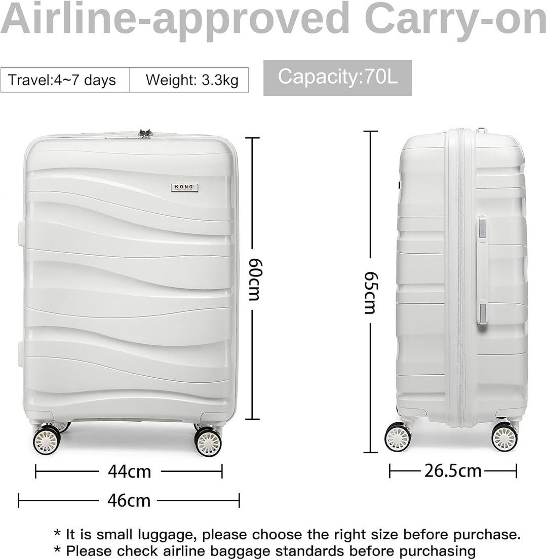 • Masse: 61 cm grosser Koffer: 66 x 46 x 26 cm. Fassungsvermögen: 70 l. Gewicht: 3,33 kg. Das 61 cm grosse Gepäckstück von Kono ist perfekt für geschäftliche und private Reisen, es bietet Ihnen maximalen Platz auf Ihren Reisen und Geschäftsreisen.