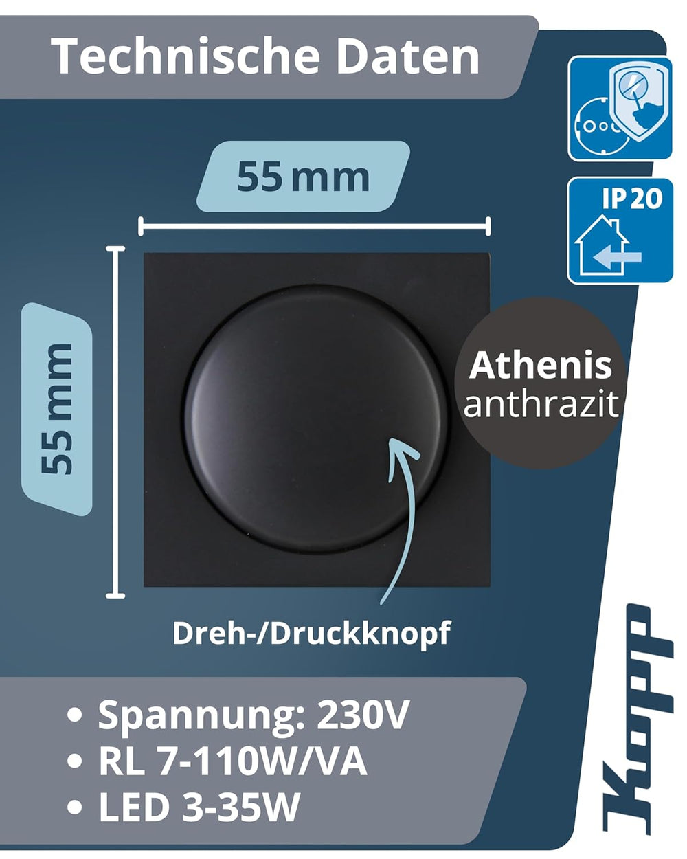 - Passend für das Schalterprogramm Athenis in Farbe anthrazit