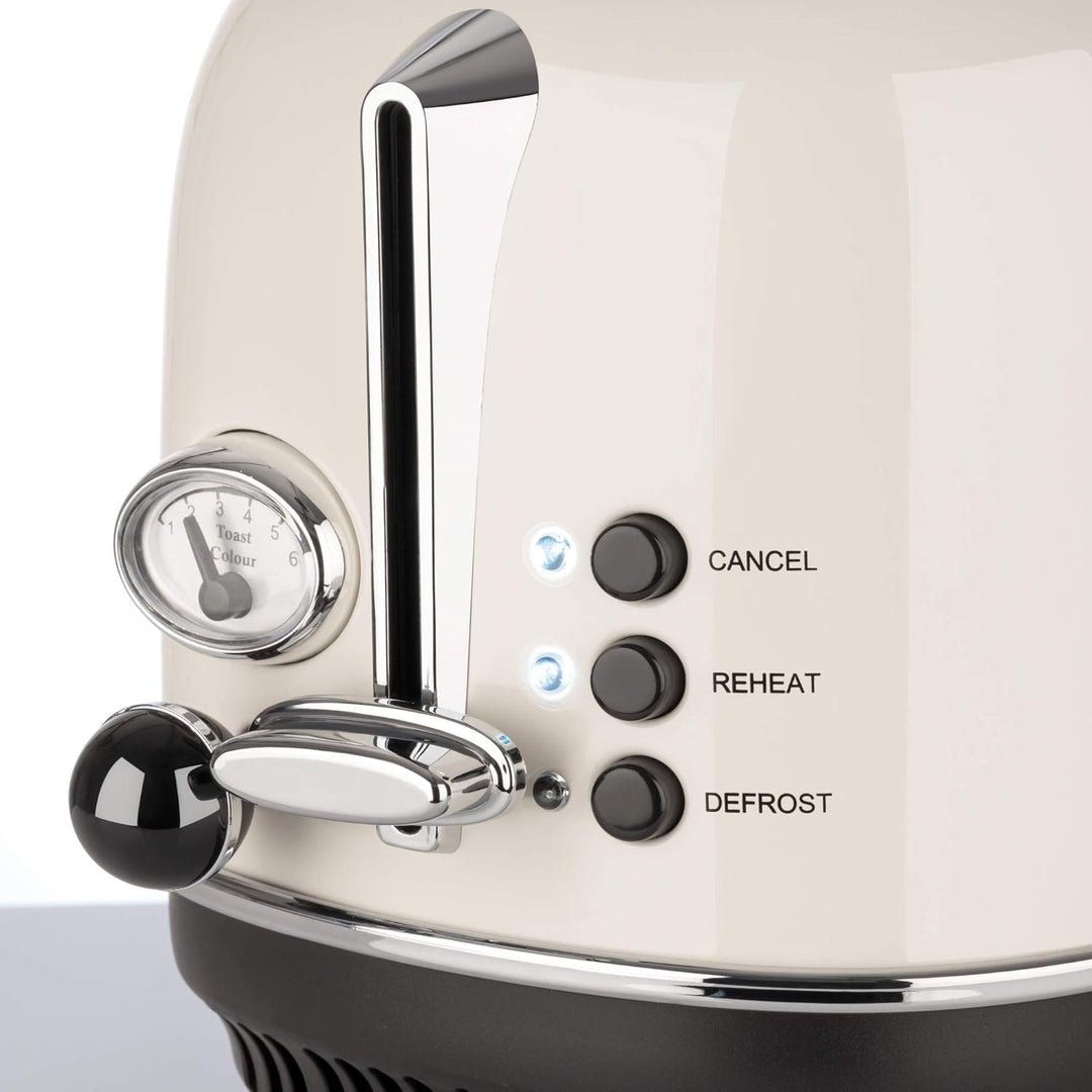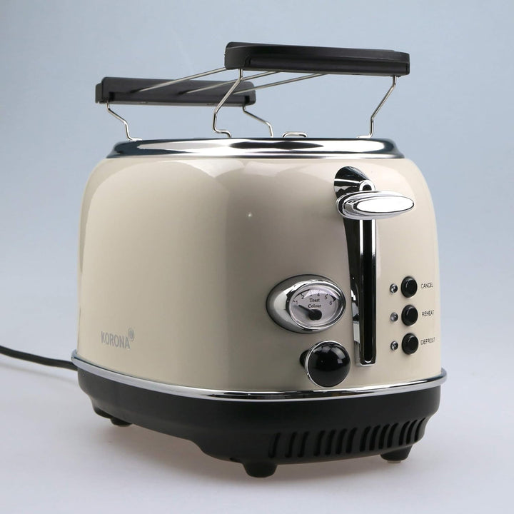 - 🍞 RETRO-DESIGN - Der cremefarbene Design-Toaster besticht durch seine nostalgische Retro-Optik mit feinen Details, wie beispielsweise der Retro-Röstanzeige zum Einstellen des Bräunungsgrades.