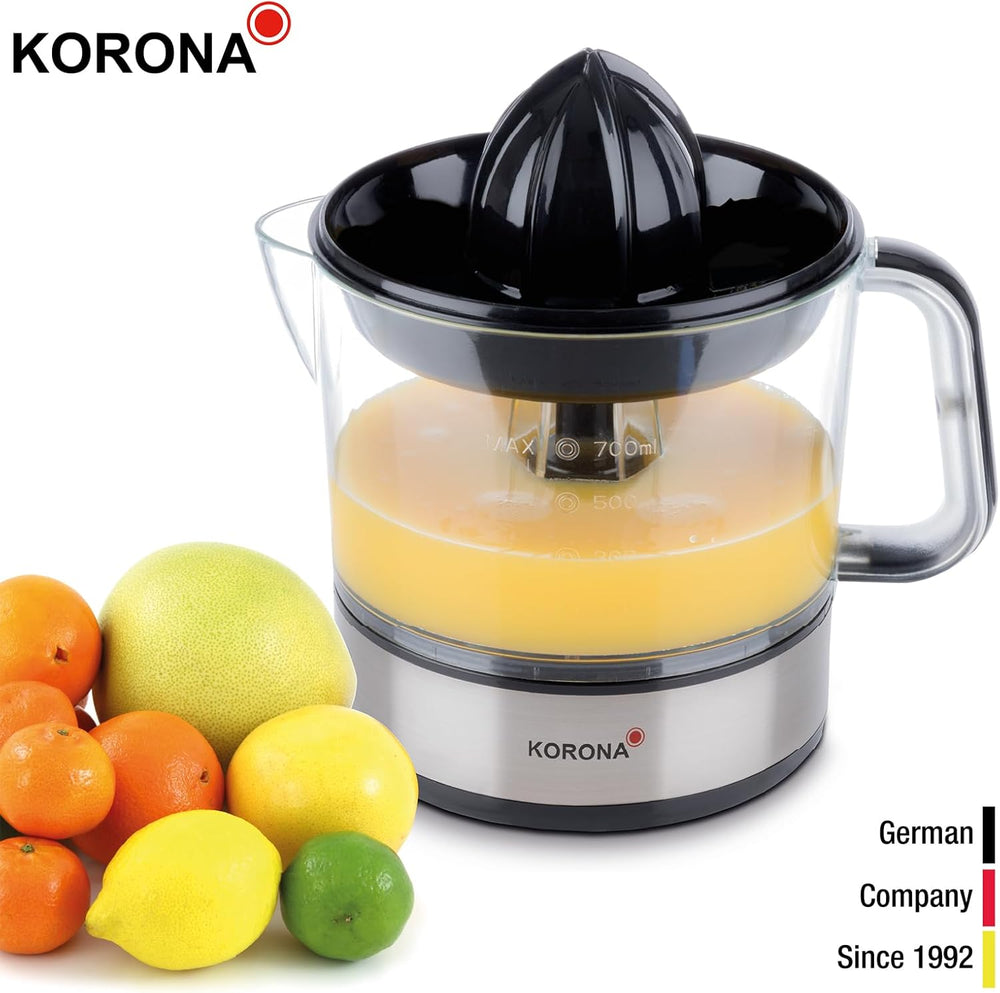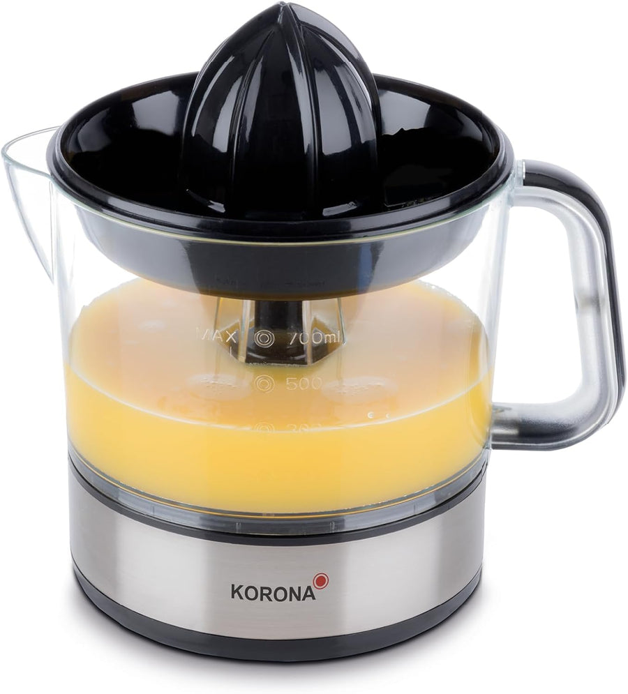 - 🥤 LEICHTE HANDHABUNG - Die Orangenpresse wird durch ein leichtes Aufdrücken der Früchte auf den Presskegel aktiviert. Dank einer Leistung von 40 Watt sowie wechselndem Rechts- und Linkslauf erhalten Sie im Nu bis zu 700 ml frischen und gesunden Saft.