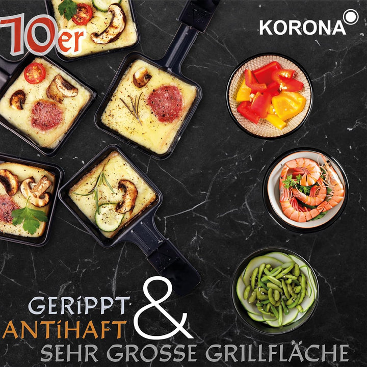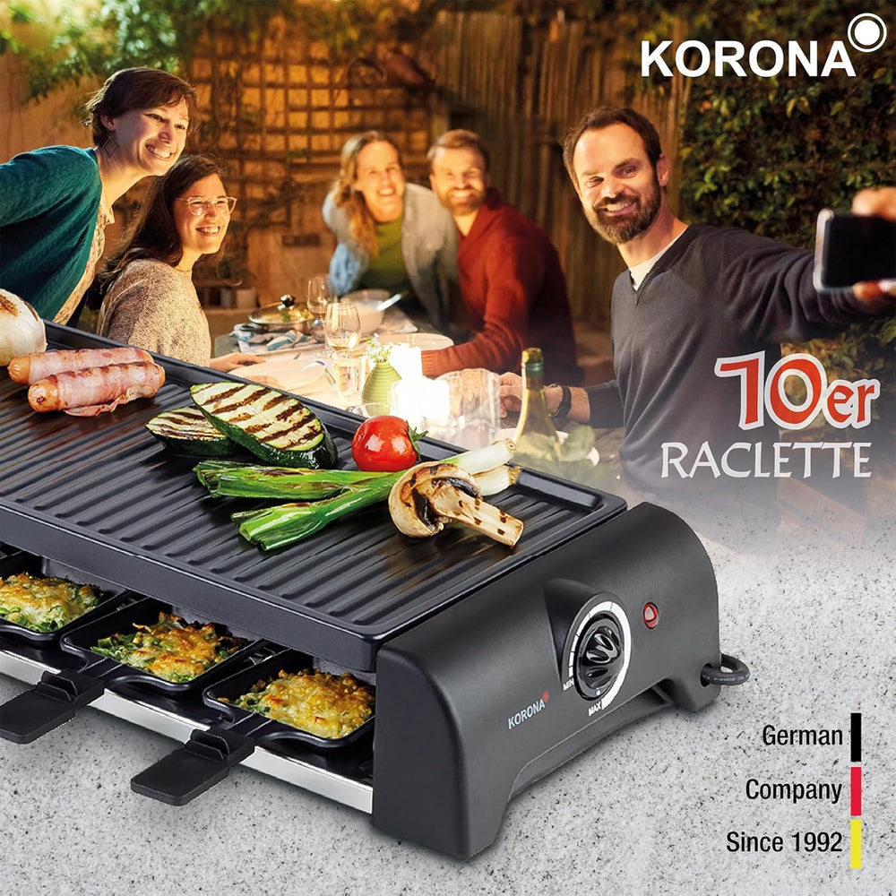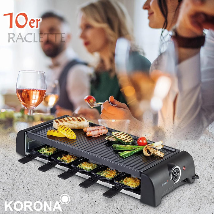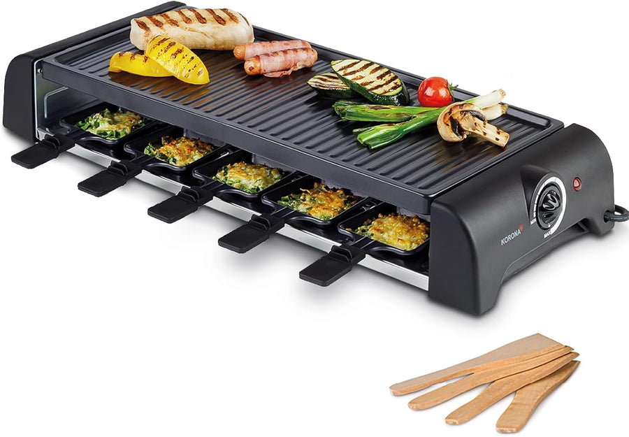 - ✅ GROSS - Dieses Raclette ist ideal für Familienfeste oder gesellige Abende mit Freunden. Mit 10 Pfännchen und der XXL-Grillfläche von 51 x 23 cm eignet sich dieses Raclette für einen gemütlichen Raclette-Abend für bis zu 10 Personen.