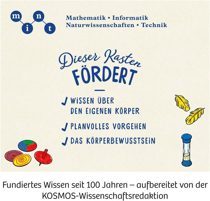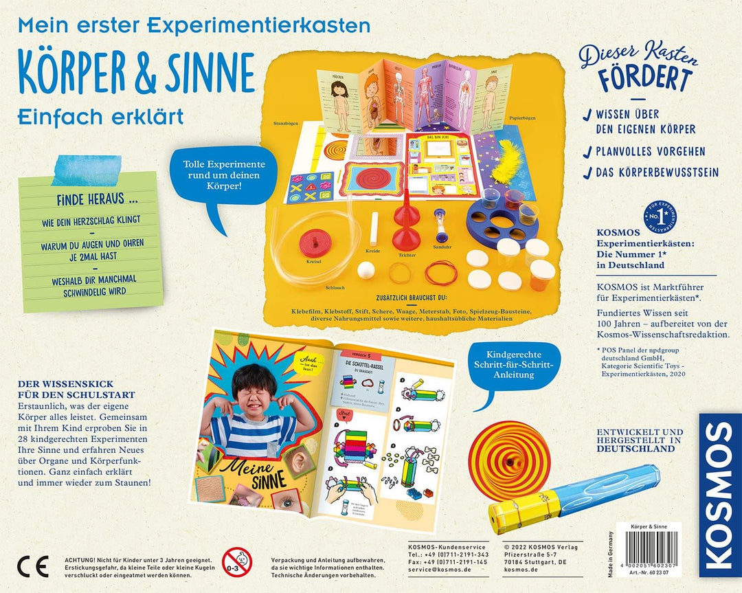 - Forschen mit vollem Körpereinsatz; Mit dem KOSMOS Experimentierkasten werden alle Sinne ausführlich getestet und Kinder zwischen 5 und 8 Jahren lernen ihren eigenen Körper kennen