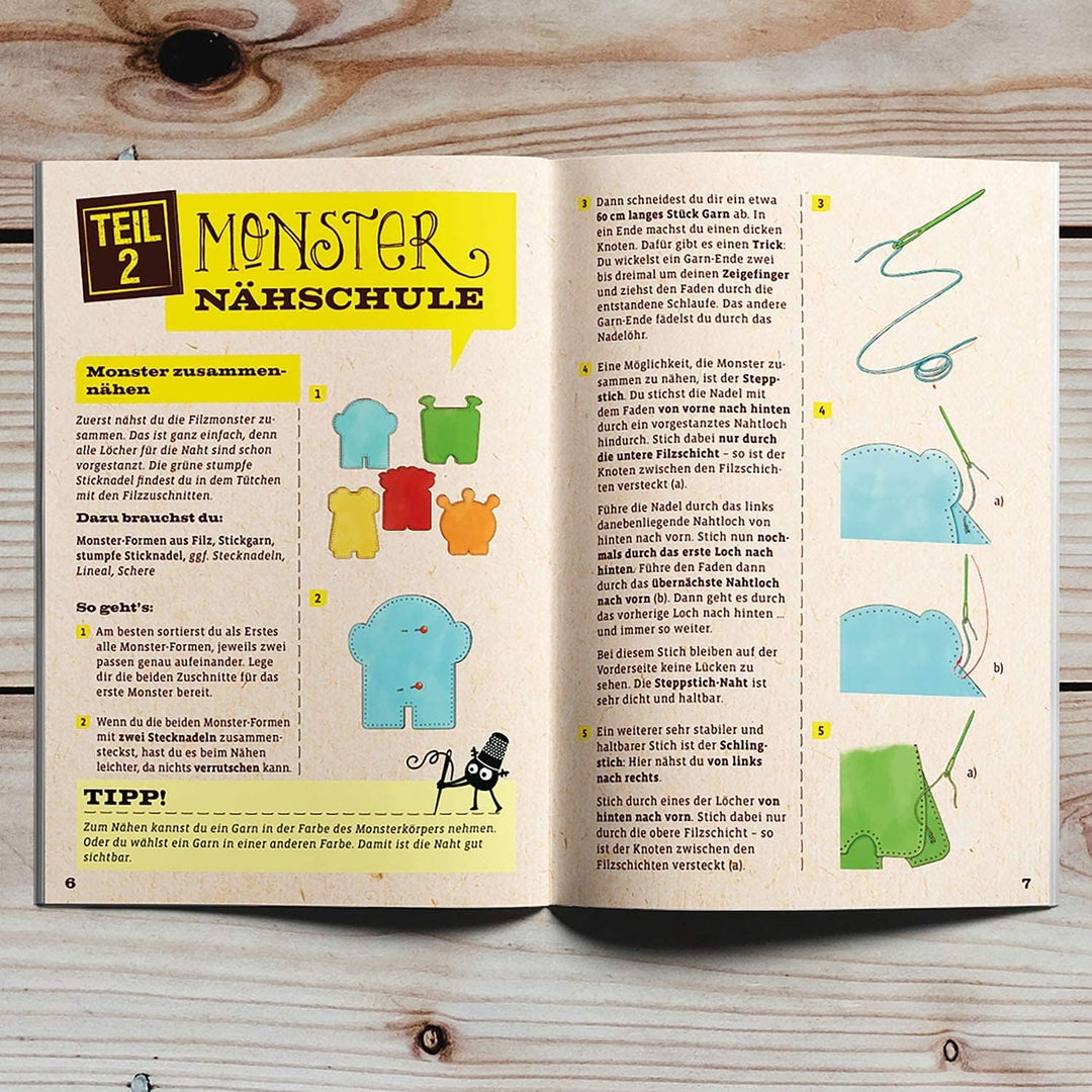 - Ausführliche Schritt-für-Schritt Anleitung: Witzige Monster-Illustrationen führen durch die liebevoll gestaltete Anleitung