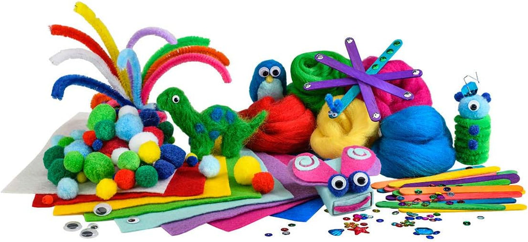• Hochwertiges Material: 8 Bögen Filz, Filzwolle in fünf Farben, Filznadel, Pompons, Pailletten, Bastelhölzer in sechs Farben, 10 Stränge Chenilledraht, Wackelaugen in drei Farben, Anleitung