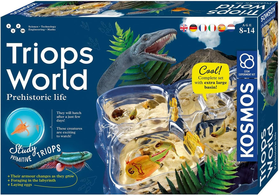 - Experimentierset u. a. mit Sand, Spezialfutter, Lupe und Eiern. Die Triops-Eier stammen aus kontrollierter und nachhaltiger Laborzucht, sie wurden nicht der freien Natur entnommen.