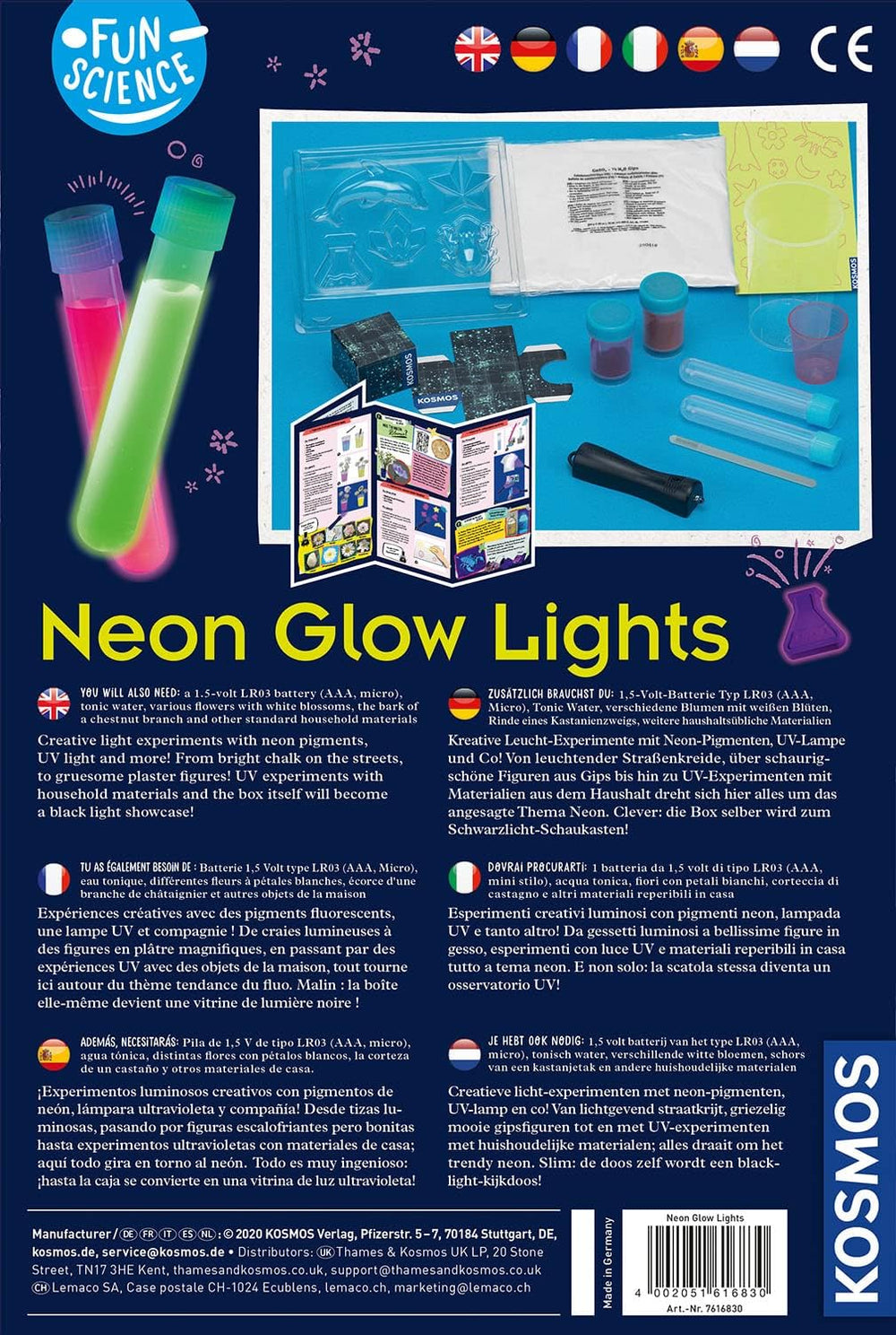 - Bunt, bunter – NEON! Hier können kreative Kids ganz einfach mit coolen Farb-Effekten experimentieren und sie mit einer UV-Lampe in Szene setzen.