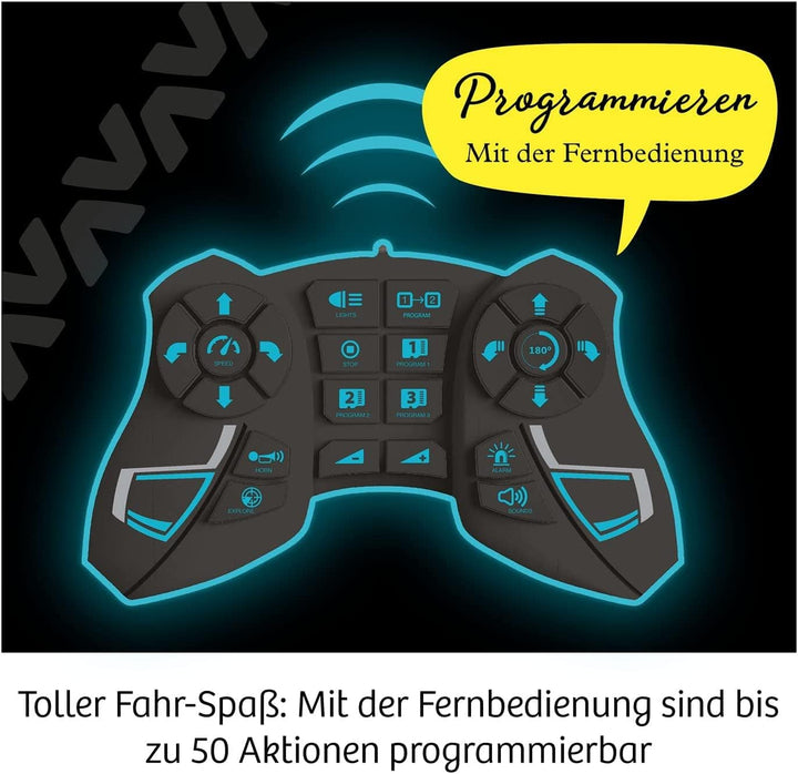 • Ob Hupe, verschiedene Geschwindigkeiten oder Licht: Die Aktionen werden einzeln gesteuert oder programmiert. Das Beste: einfach speichern und die Programme später wieder abrufen.