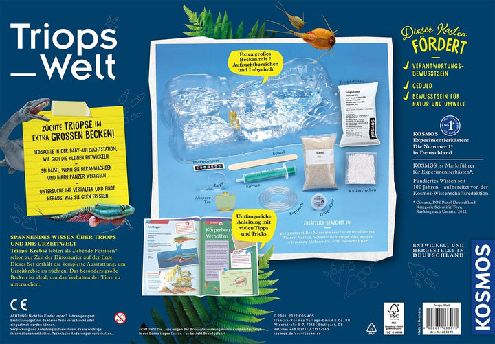 - Triopse selbst züchten und hautnah dabei sein, wenn sie schlüpfen, heranwachsen, ihren Panzer wechseln, im Sand wühlen und Eier legen - all das ist mit diesem KOSMOS Set möglich