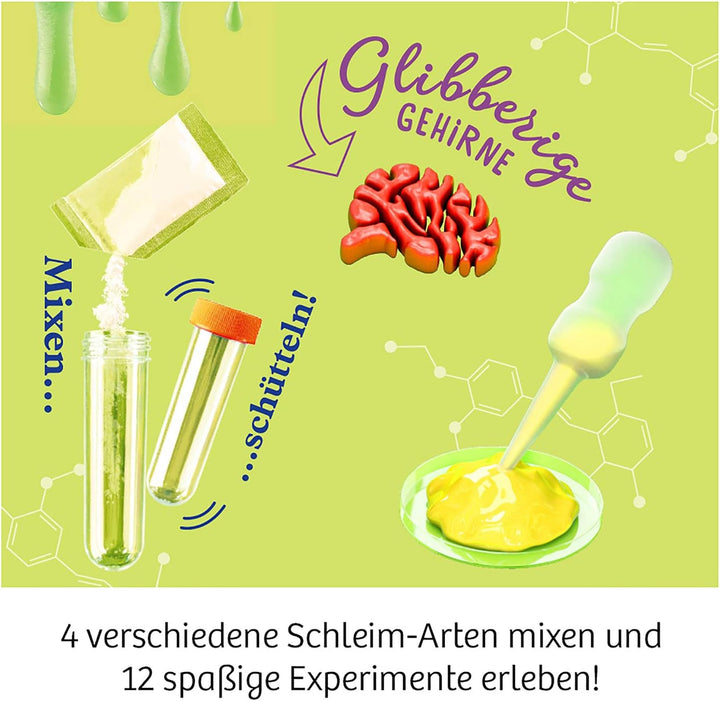 - Nachtleuchtendes Schleim-Alien, glibberige Gehirne und Farbwechsel-Schleim einfach selber machen – mit dieser Experimentier-Station wird Laborarbeit zum grossen Spass