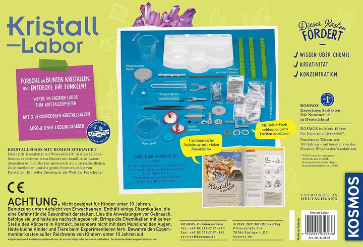 - Das Kristall-Labor ist kombinierbar mit den KOSMOS Experimentierkästen „Big Fun Chemistry“ und „Schleim-Labor“ und bietet einen farbenfrohen und spannenden Einstieg in die Welt der Wissenschaft