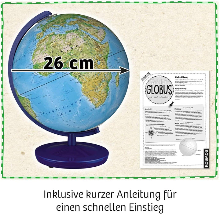 - Der KOSMOS Globus ermöglicht mit seinem hochwertigen physischen Kartenbild ein schnelles und intuitives Orientieren auf der Weltkugel.