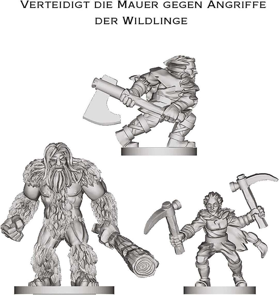 • Ihr übernehmt die Rolle von Brüdern der Nachtwache und setz  Rohstoffe ein, um Strassen, Siedlungen und Befestigungen zu bauen, Wächter für die Mauer anzuwerben oder Entwicklungskarten zu kaufen um so euren Einfluss im Norden zu stärken