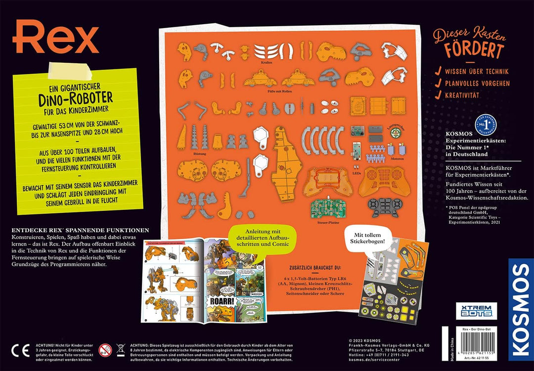 - Der gigantische Rex von Kosmos ist für alle Dino- und Roboterfans ein riesiger Aufbauspass und starker Bewacher des eigenen Kinderzimmers. Auf geht’s mit Gebrüll