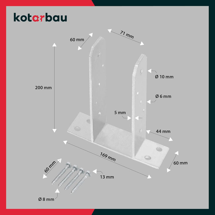 - WIDERSTANDSFÄHIGKEIT – Der U Pfostenträger zum Aufschrauben von KOTARBAU zeichnet sich durch seine hohe Qualität aus. Die Wahl von Materialien, aus denen er gefertigt wird, gewährleistet eine lange Lebensdauer der Aufschraubhülse. Der Stützenfuss